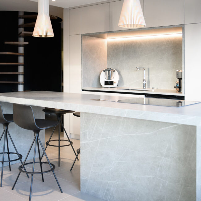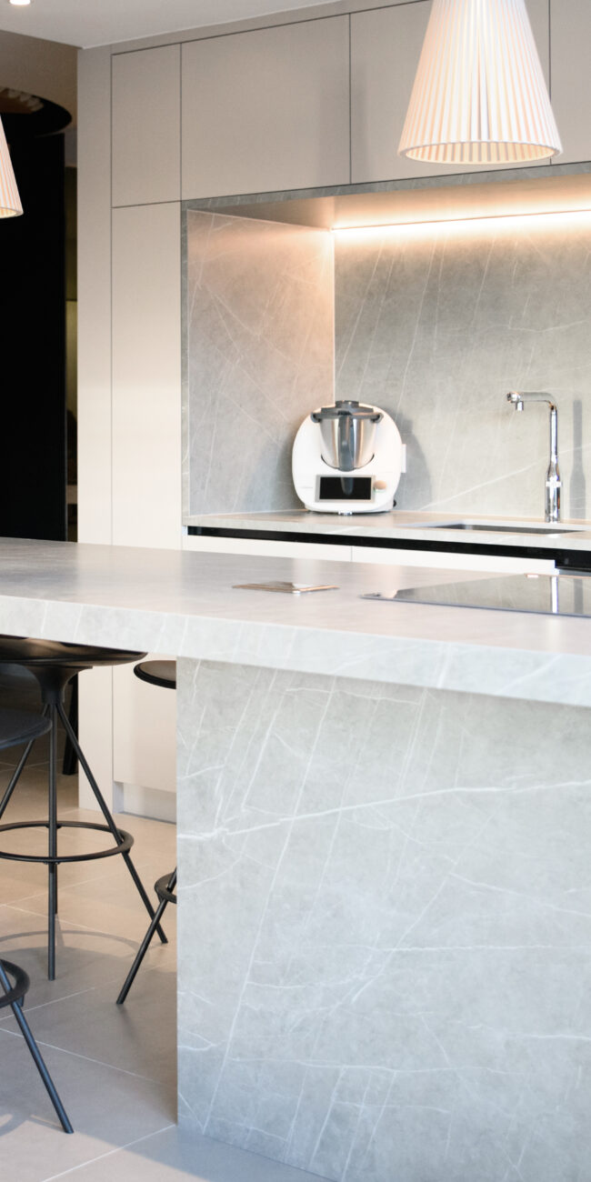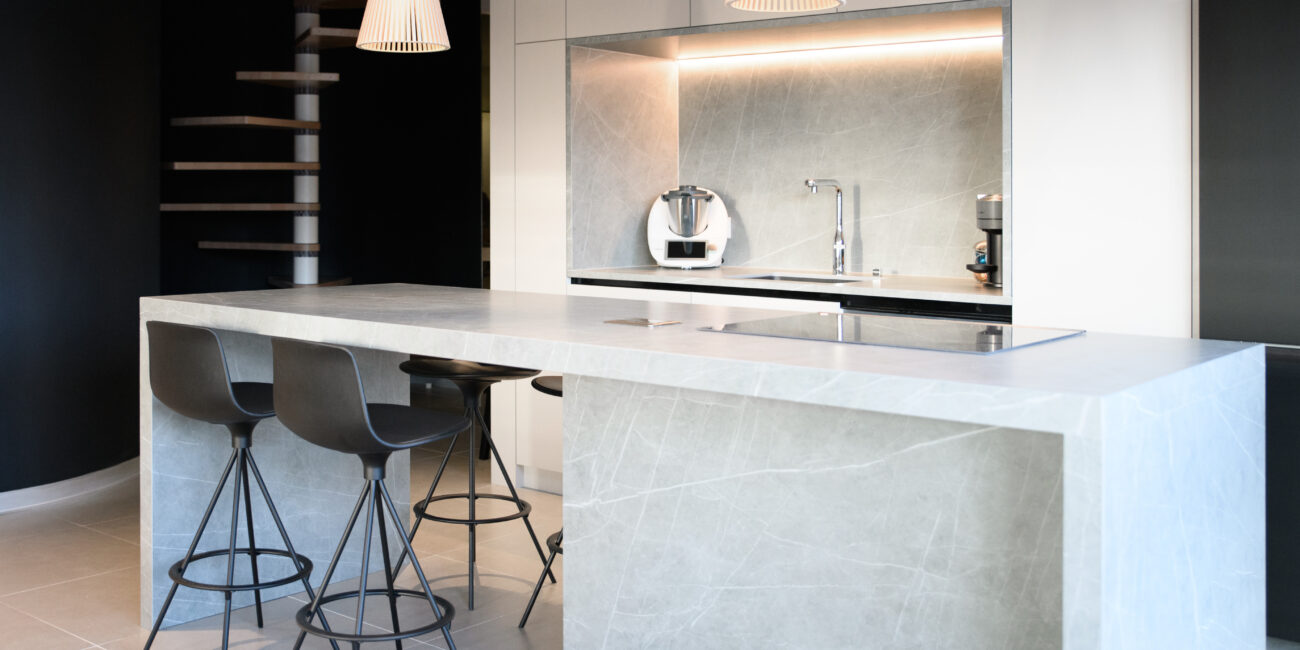 Chez Pietra, nous avons fait le choix de travailler uniquement avec des matériaux reconnus pour leur excellence : Neolith, Lapitec, Atlas Plan et Vicostone. Ces marques allient technologie, résistance et esthétisme, tout en respectant des standards environnementaux exigeants. Leurs surfaces, non poreuses et extrêmement durables, résistent à la chaleur, aux rayures et au temps* (degré variable selon le matériau). Chaque matière est soigneusement sélectionnée pour la qualité de sa texture, la précision de sa finition et la fiabilité de ses performances. Des matériaux d’exception, au service d’un rendu esthétique et durable.