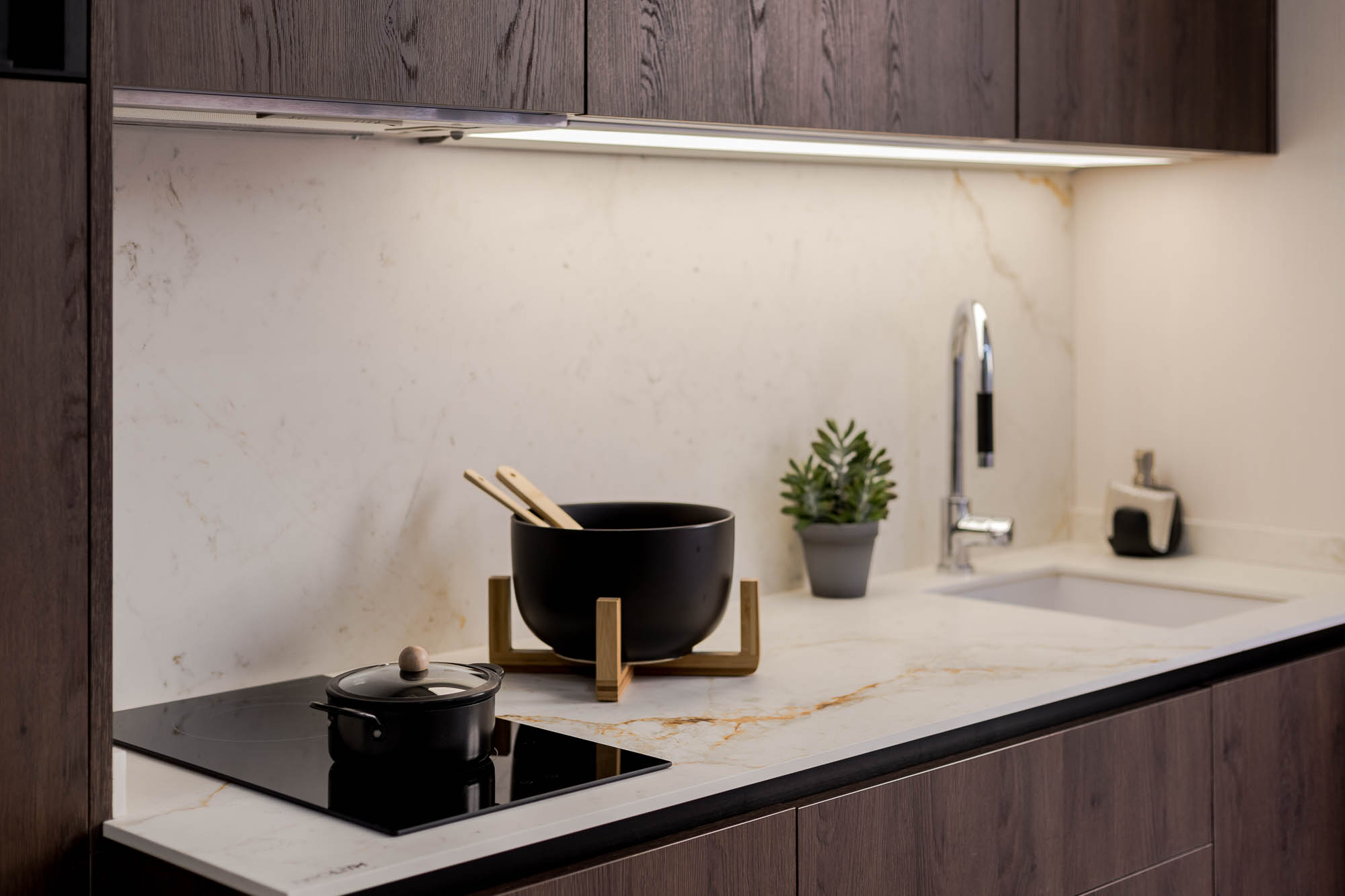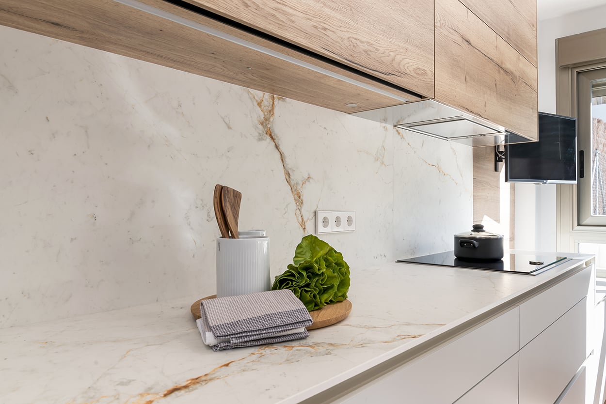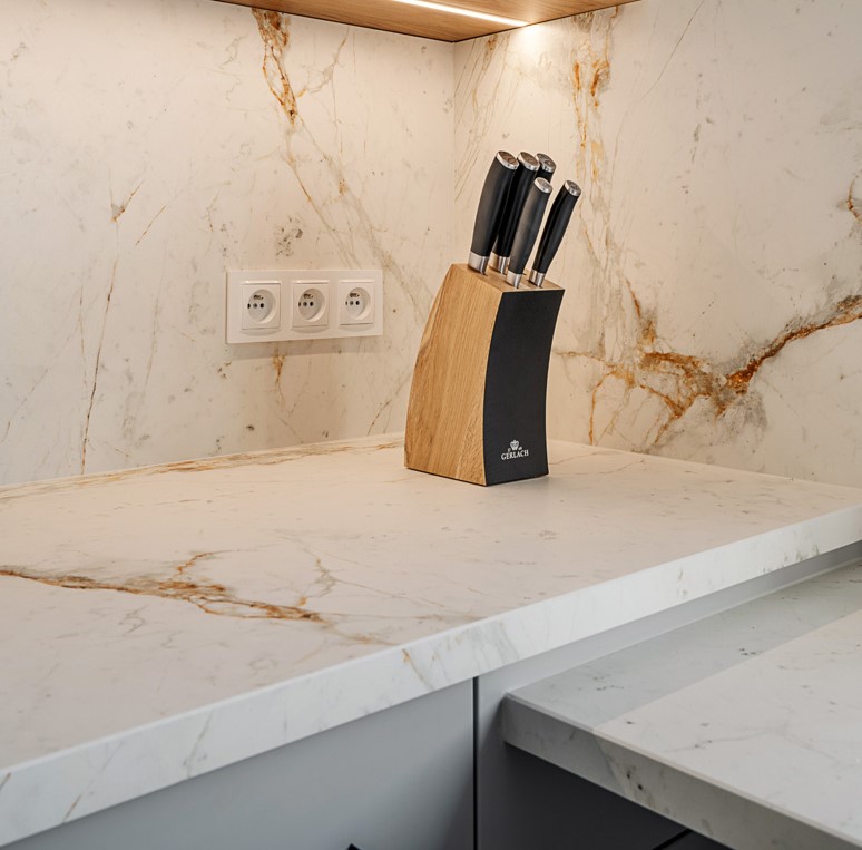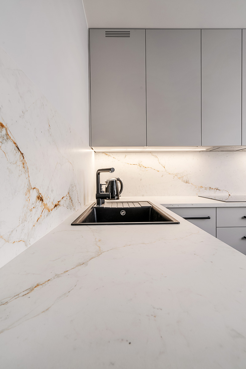 Abu Dhabi se distingue des marbres gris classiques par ses touches audacieuses d’ocre, créant une ambiance extraordinairement élégante et distinctive. Bien que les veines soient plus prononcées grâce à leur couleur originale, Abu Dhabi évite l'effet de surcharge visuelle en raison de la répartition subtile et équilibrée de ces veinures à travers la tranche. Il ajoute également un cachet remarquable à n’importe quel espace, grâce à son mélange subtil de tons et à sa texture riche qui captivent le regard.