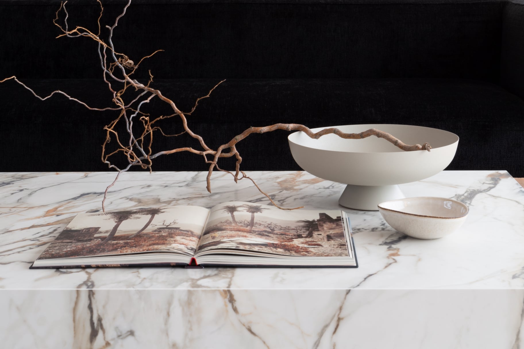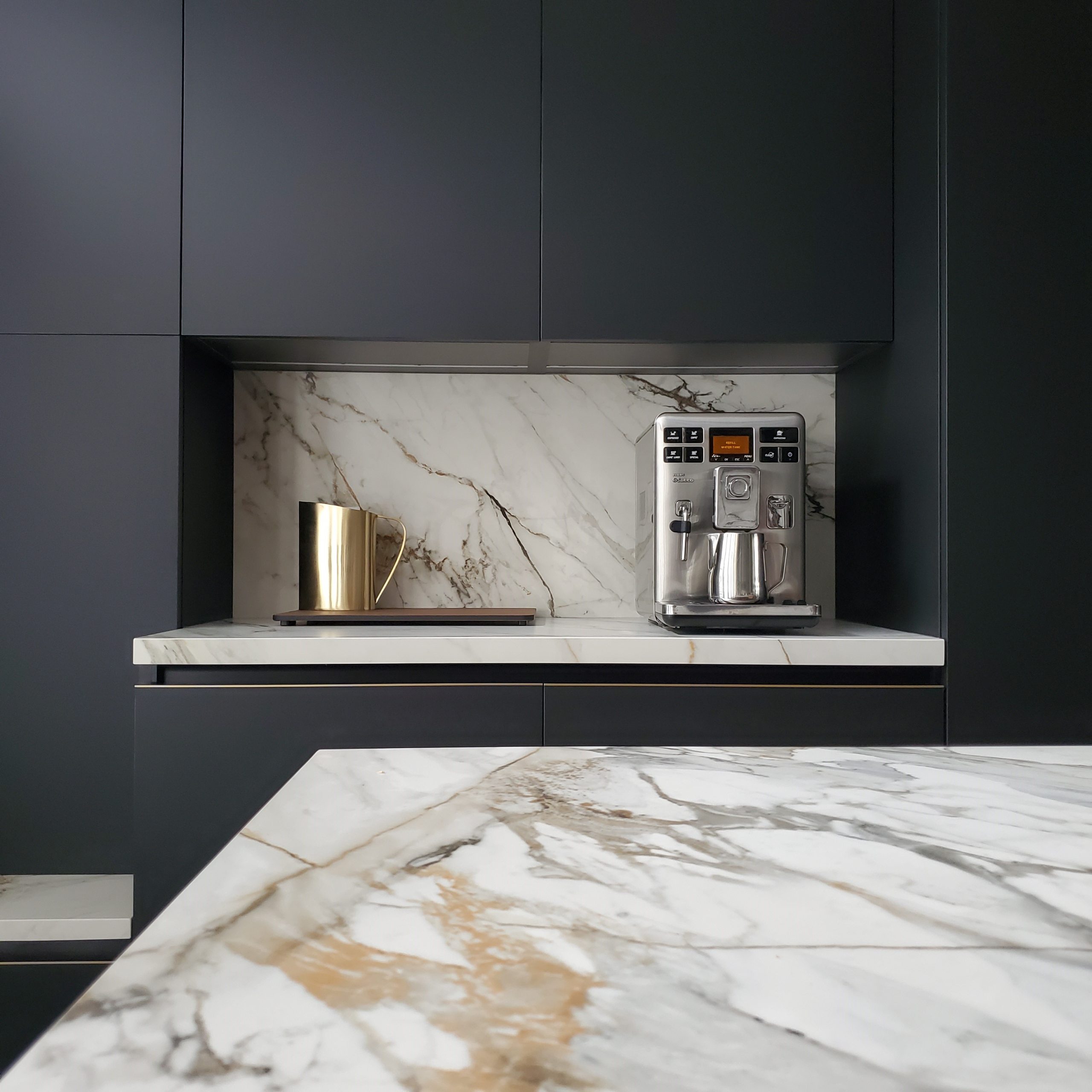 Parmi toutes les surfaces inspirées du marbre italien de Carrare, Calacatta Luxe se distingue par son audace et sa splendeur. Il sublime les contrastes et enrichit les tons pour créer un effet visuel saisissant et accrocheur. Sa proposition exclusive et puissante est conçue pour captiver et impressionner.