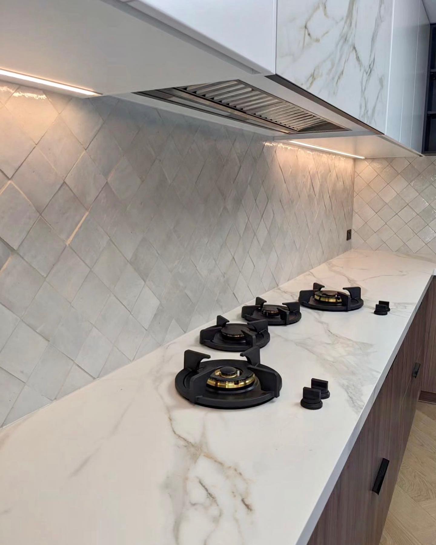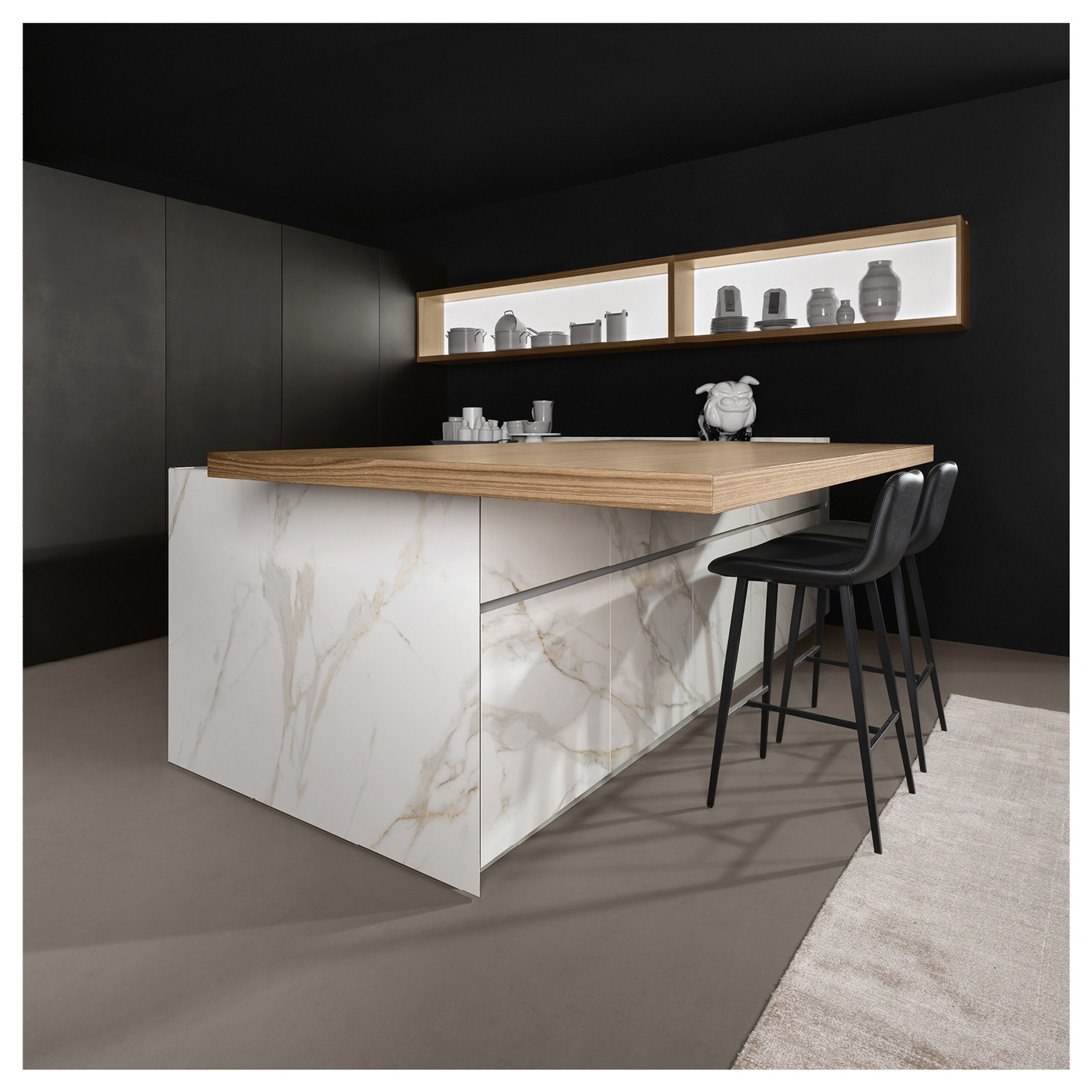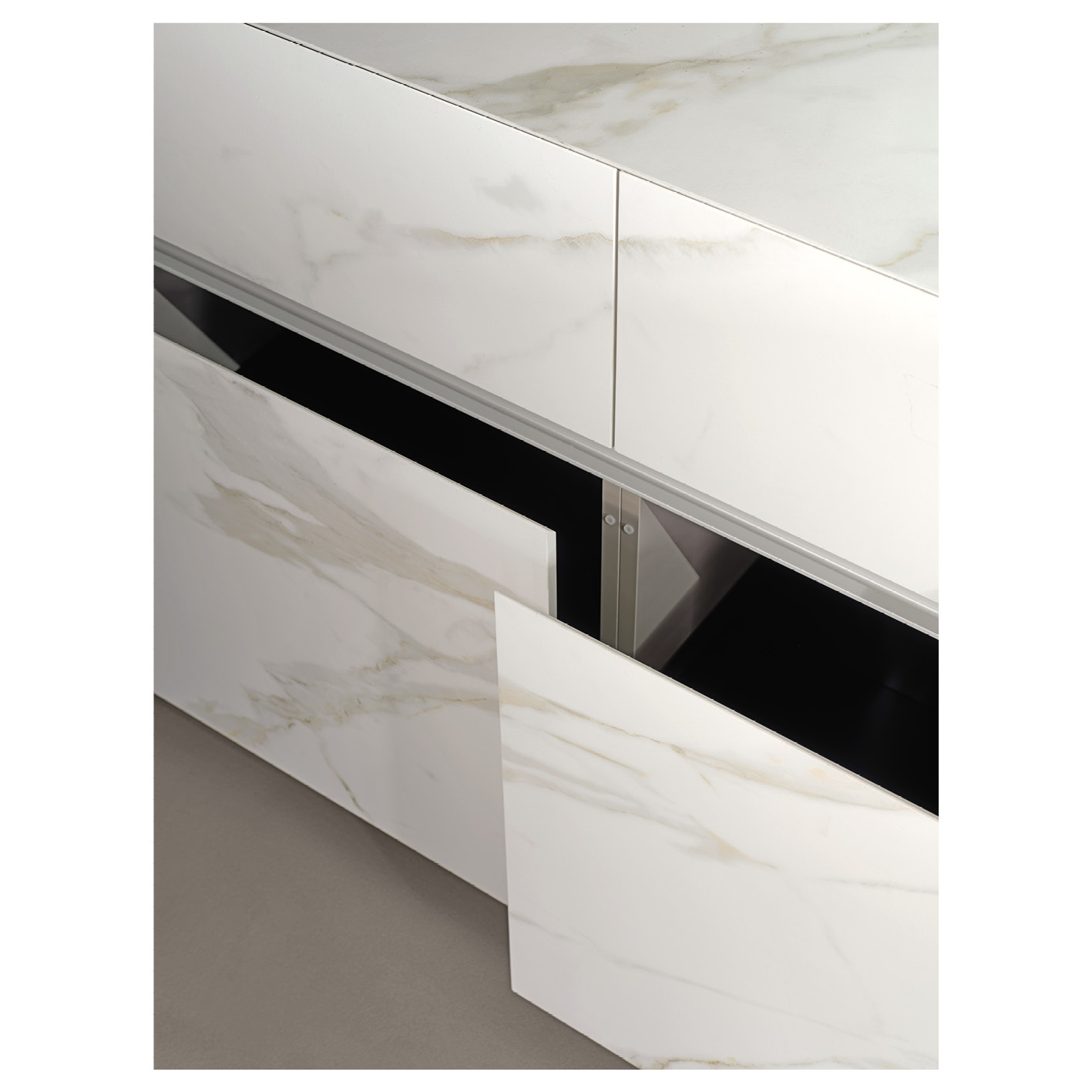 Les veinures subtilement nuancées créent un contraste visuel harmonieux qui enrichit l'espace, faisant de ce modèle une pièce maîtresse idéale pour des intérieurs contemporains ou classiques. Que ce soit dans une cuisine, une salle de bains ou un espace de vie, cette interprétation du marbre de Carrare apporte une touche d'élégance et de caractère, rappelant le luxe intemporel des palais romains.
