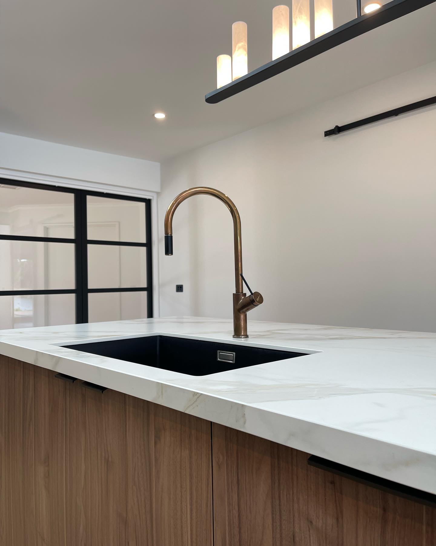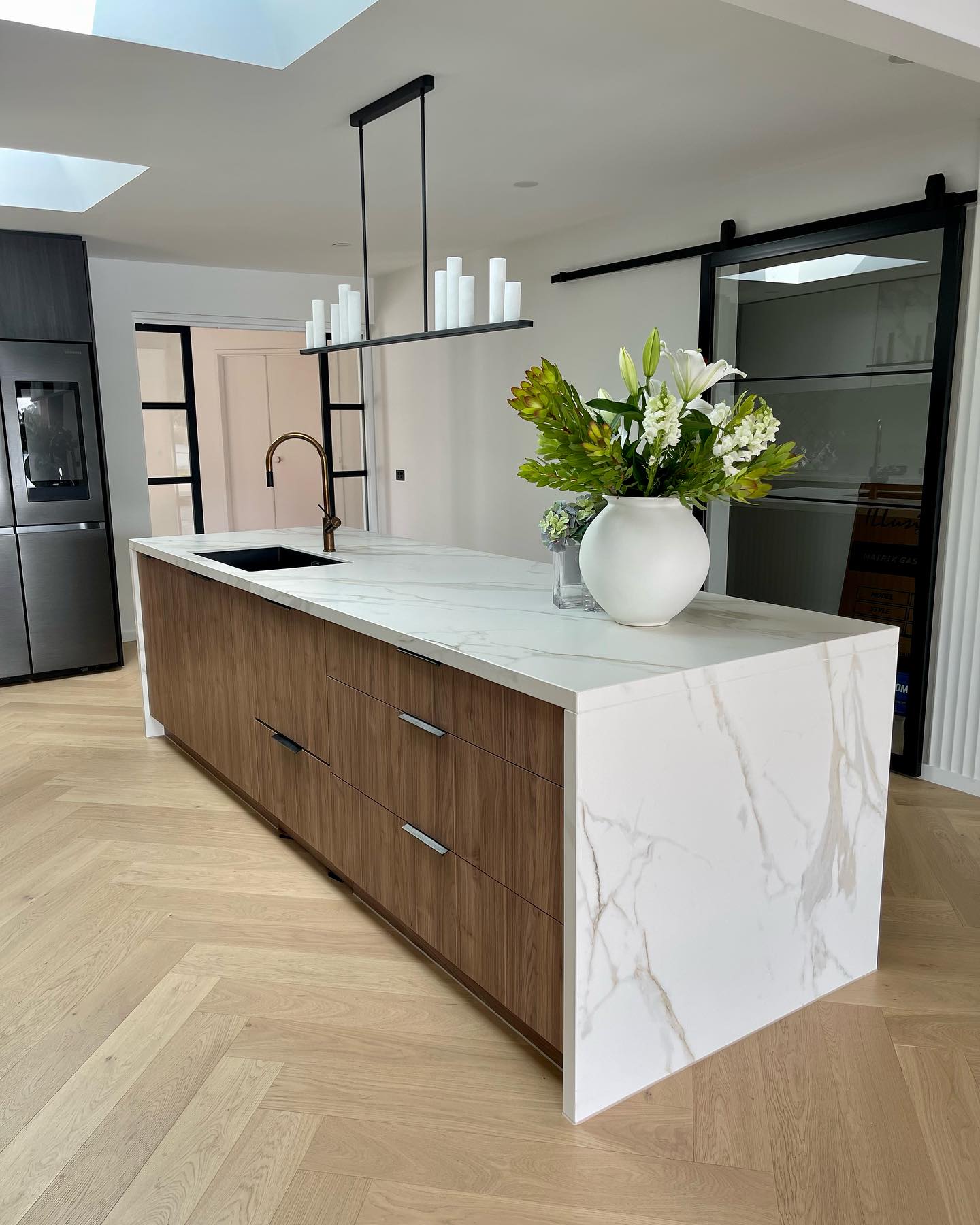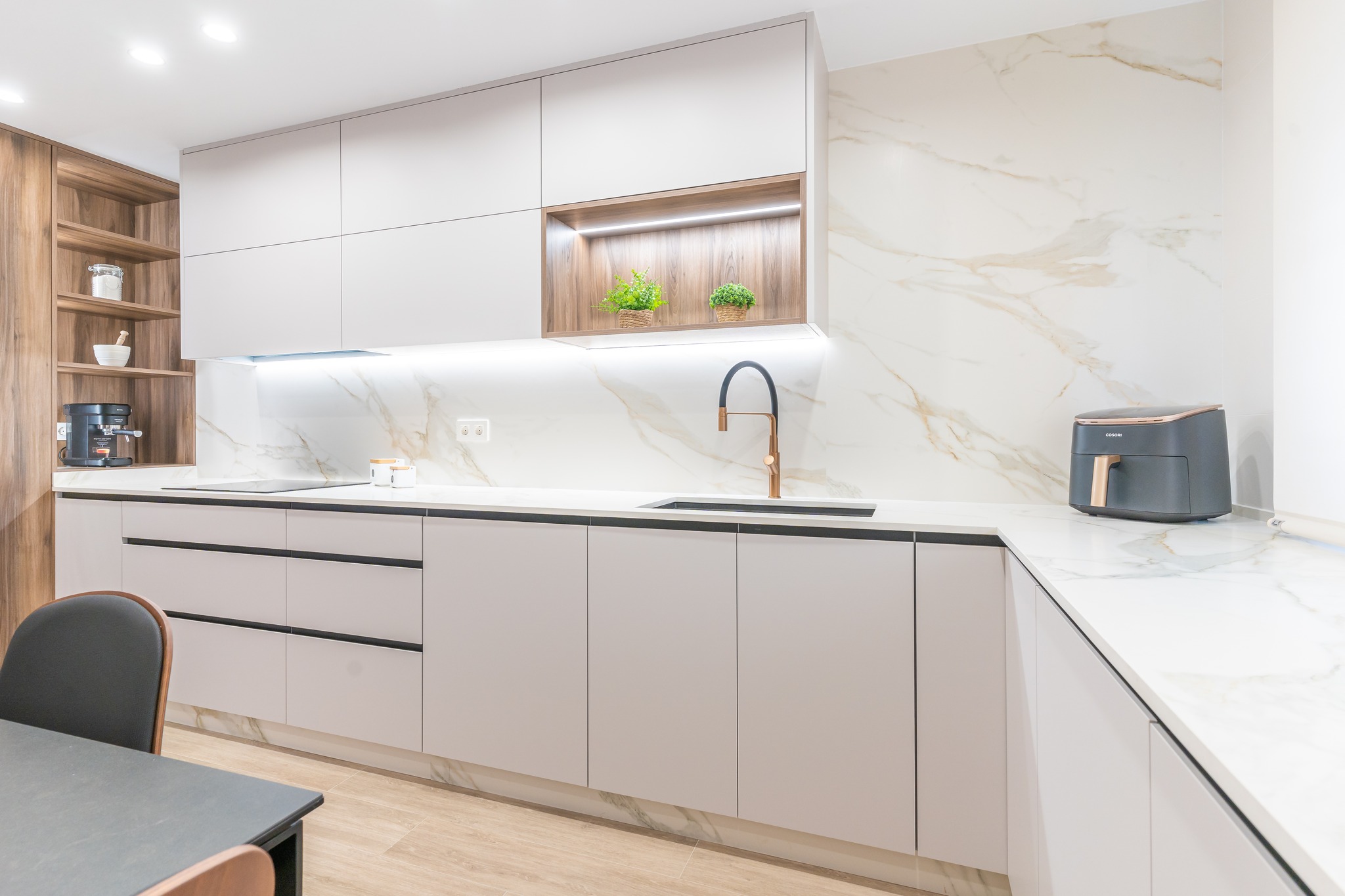 Les veinures subtilement nuancées créent un contraste visuel harmonieux qui enrichit l'espace, faisant de ce modèle une pièce maîtresse idéale pour des intérieurs contemporains ou classiques. Que ce soit dans une cuisine, une salle de bains ou un espace de vie, cette interprétation du marbre de Carrare apporte une touche d'élégance et de caractère, rappelant le luxe intemporel des palais romains.