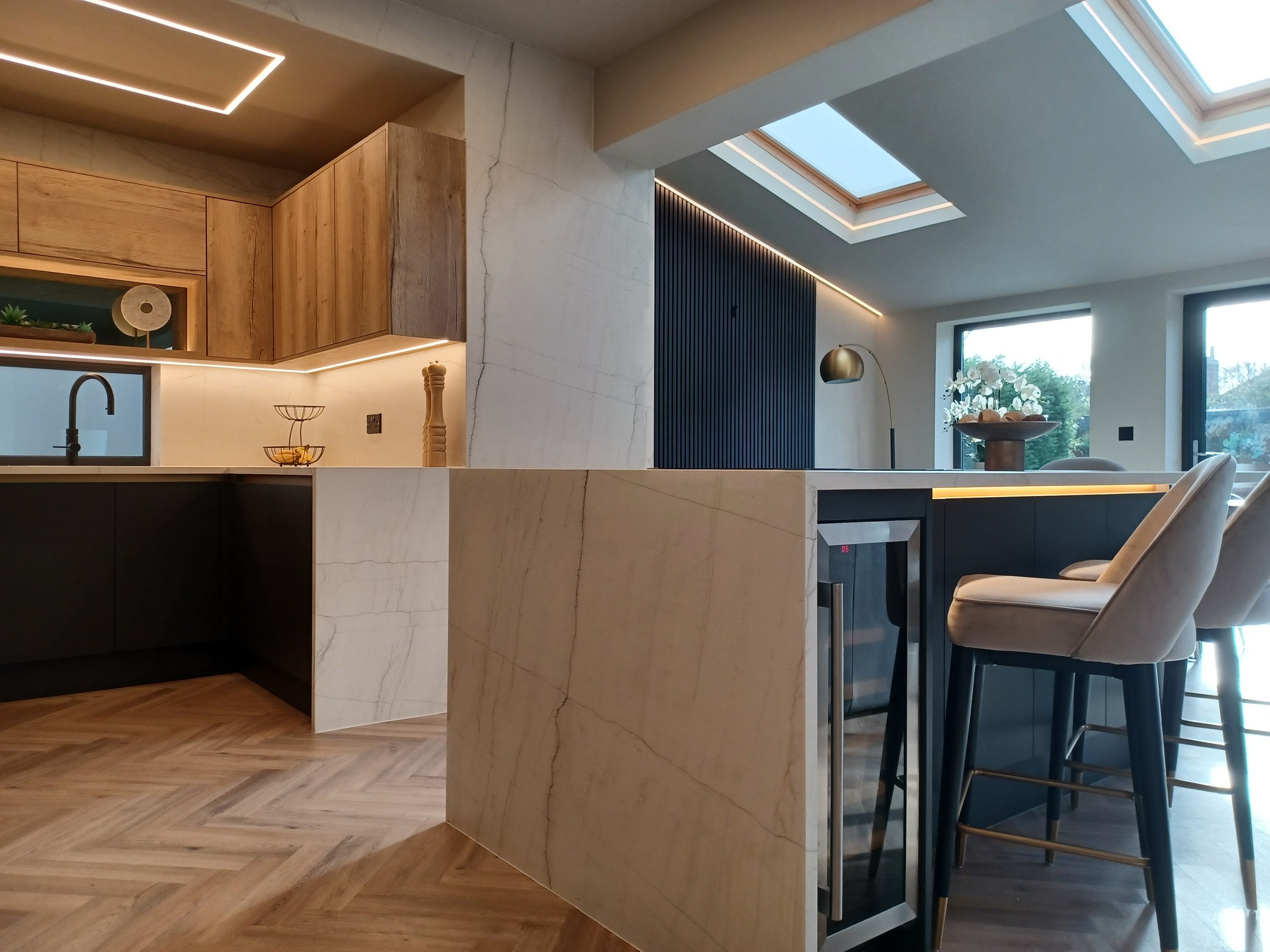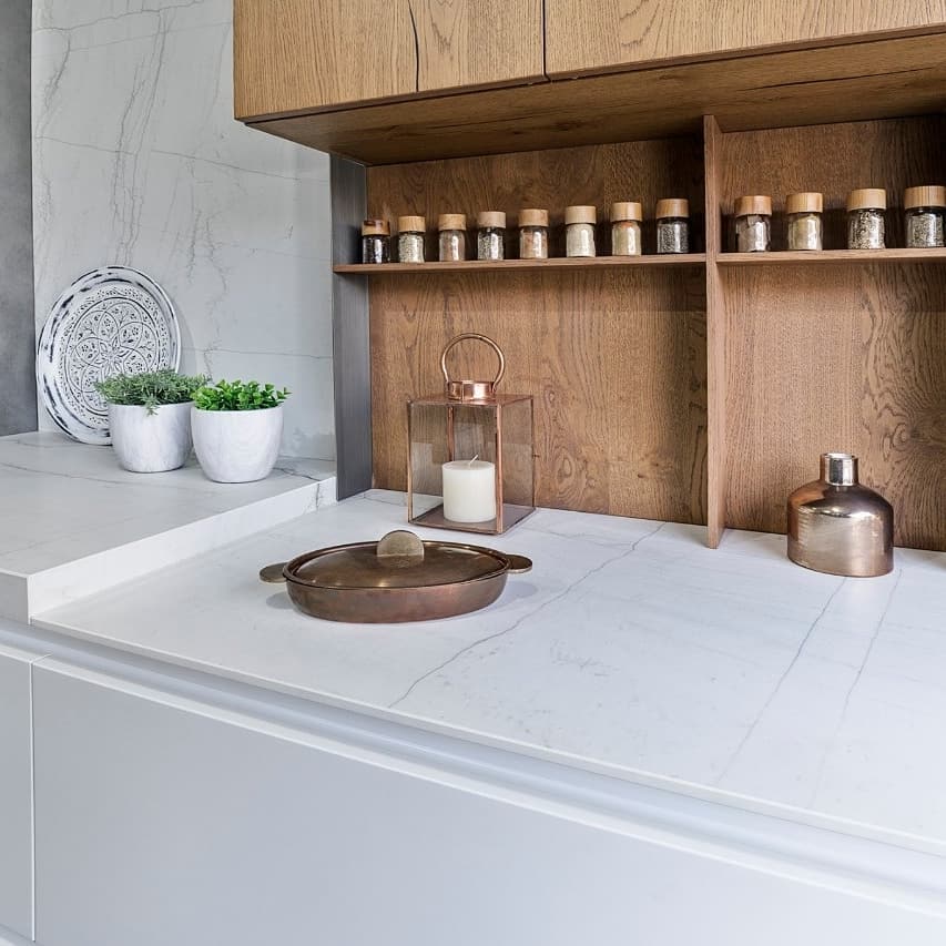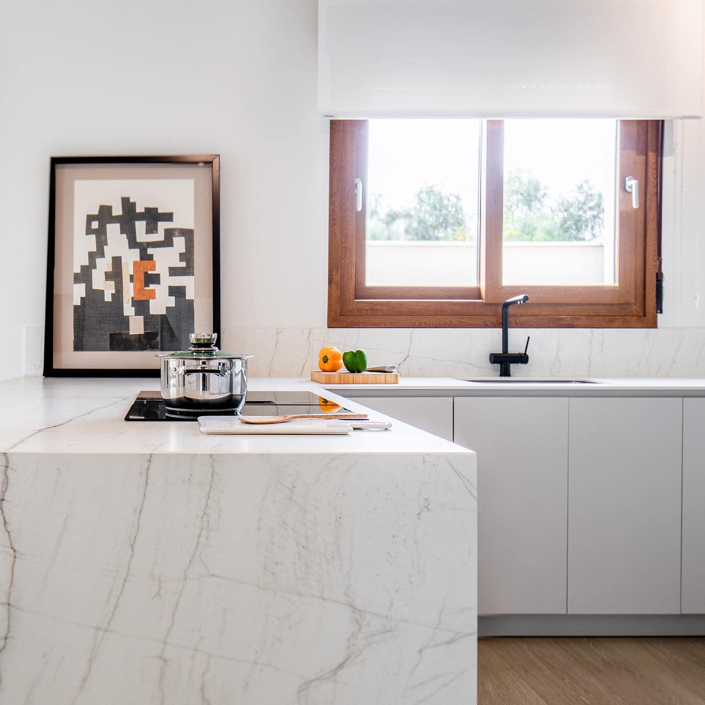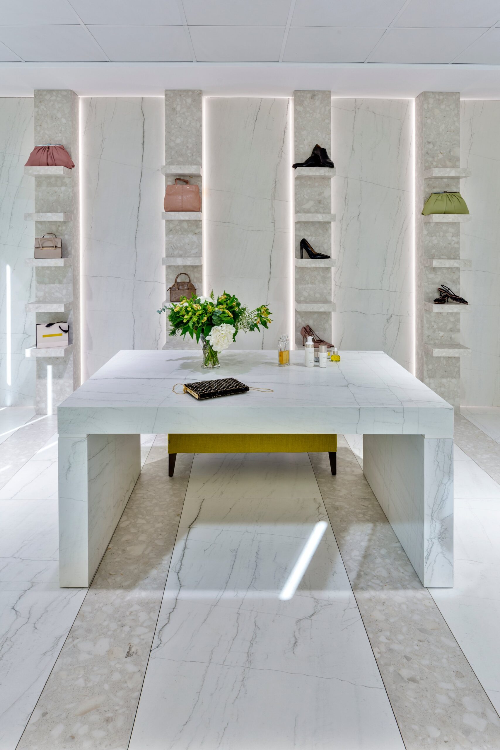 Le plus : grâce à une technique spéciale, Neolith creuse un bas-relief sur la surface, à l'emplacement exacte des motifs de veines. Un détail subtil qui rend à la pierre une partie de son âme.