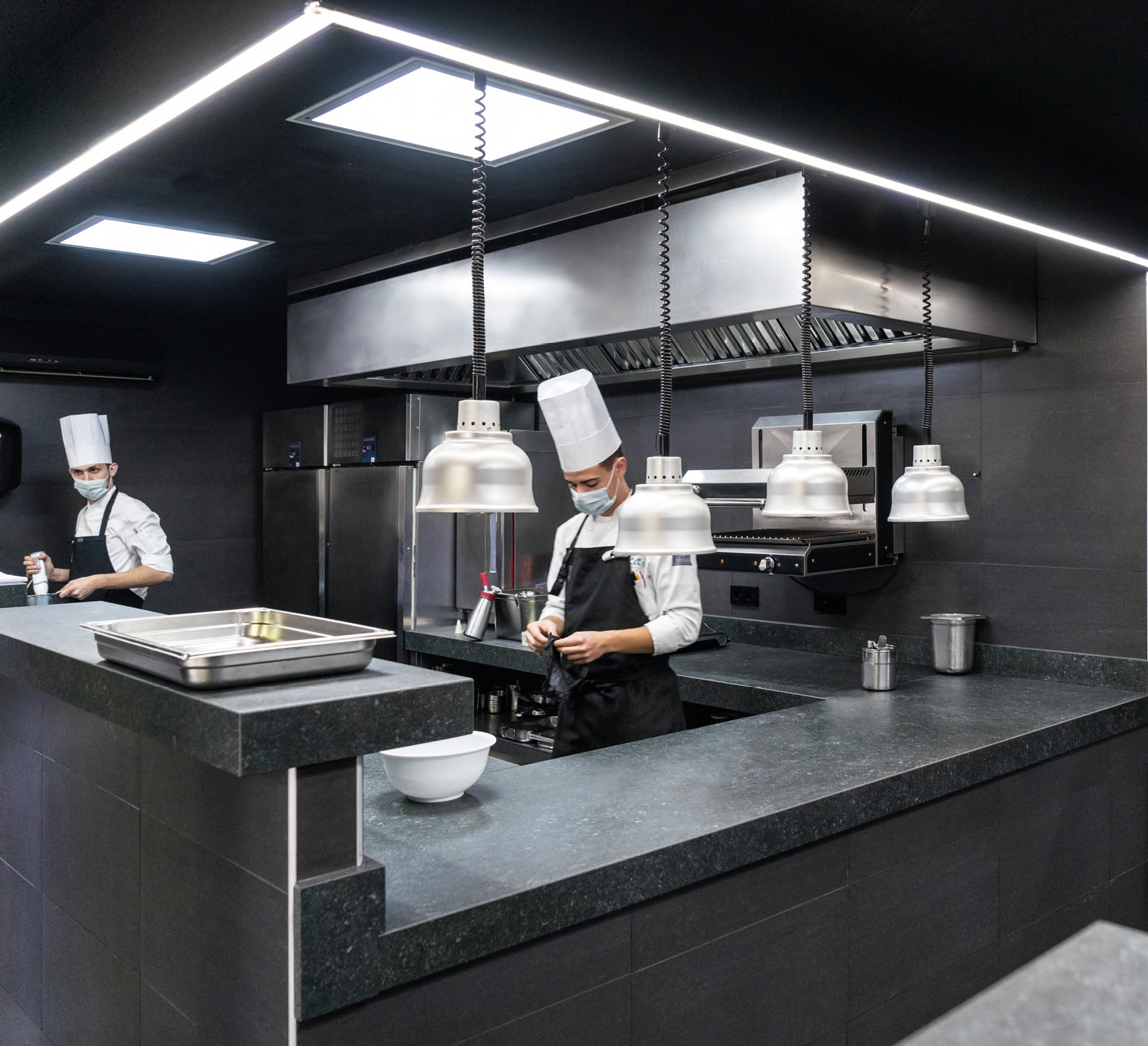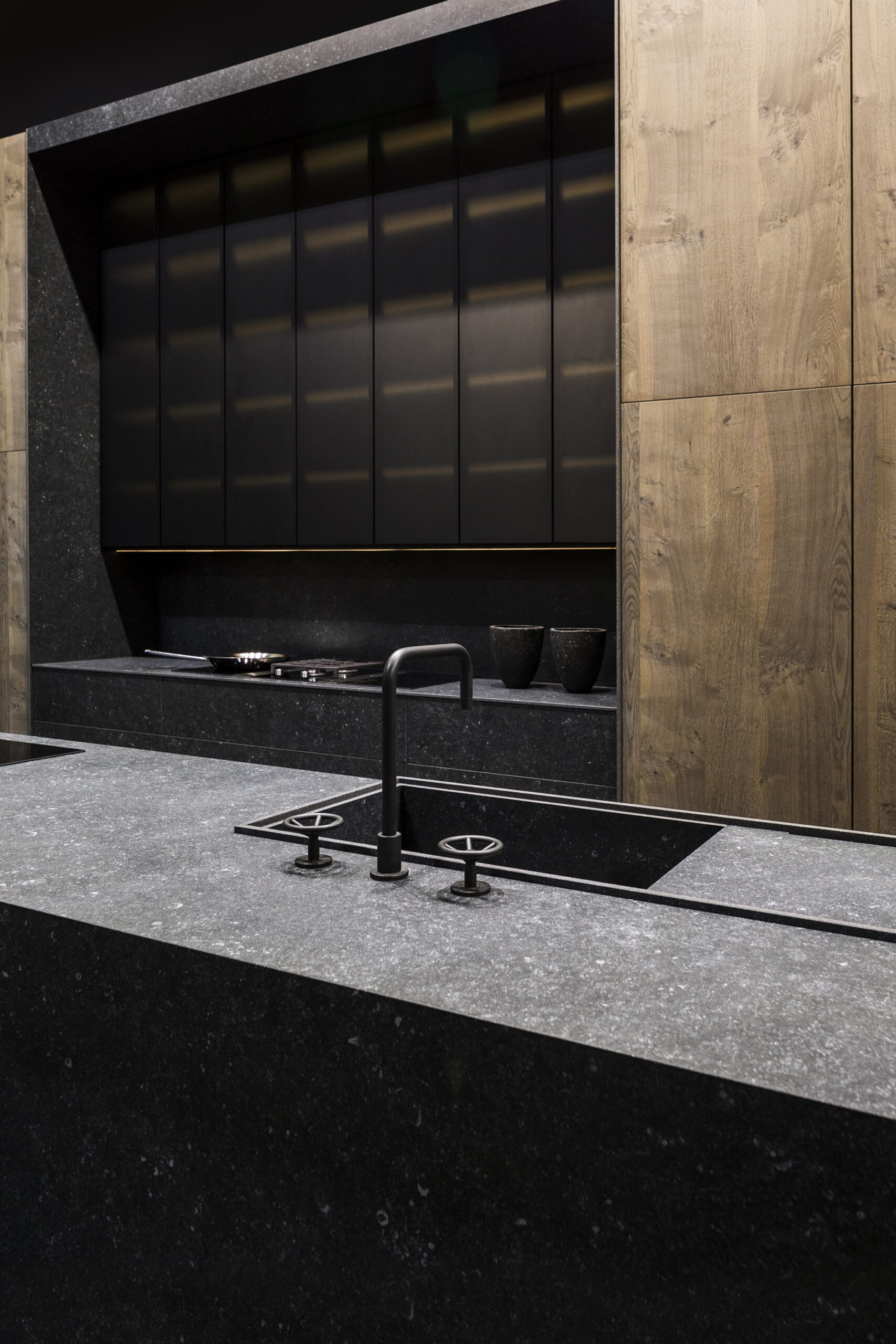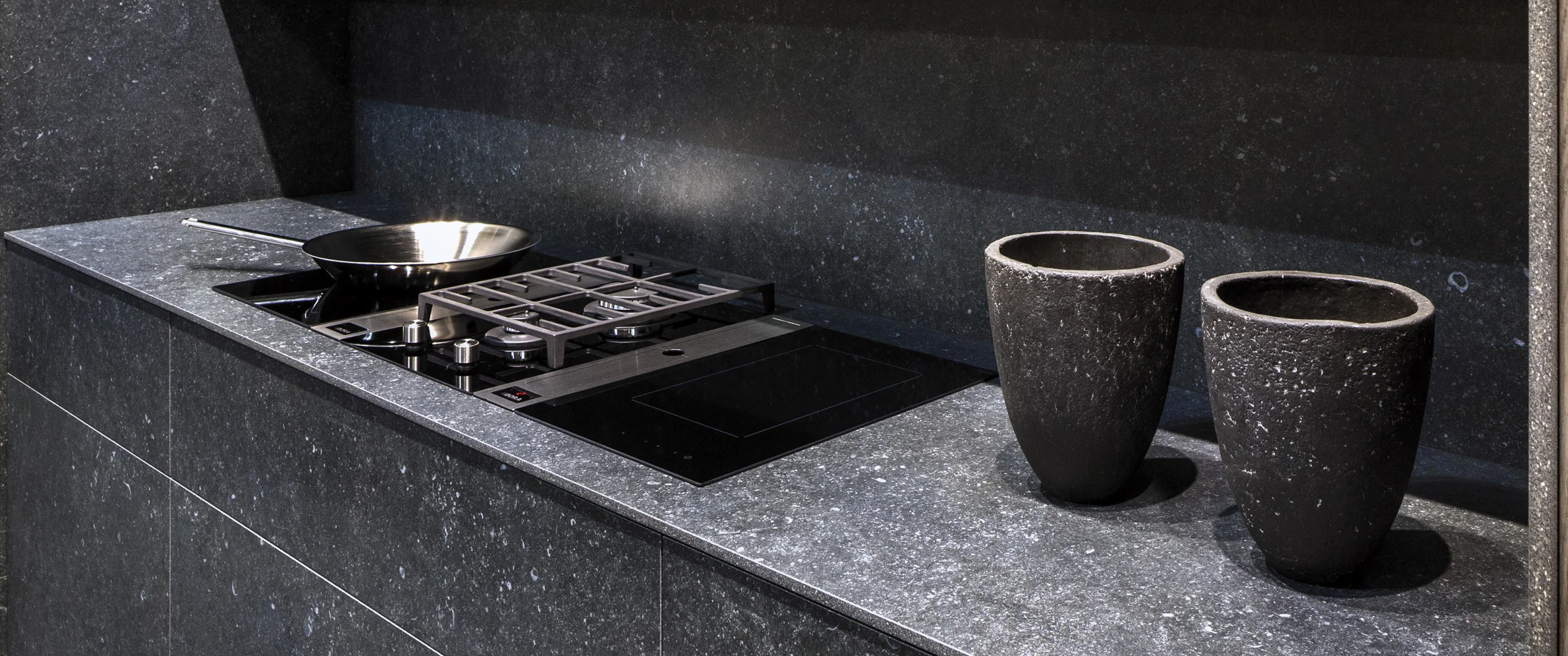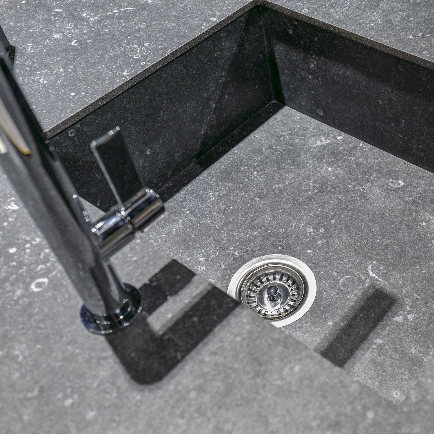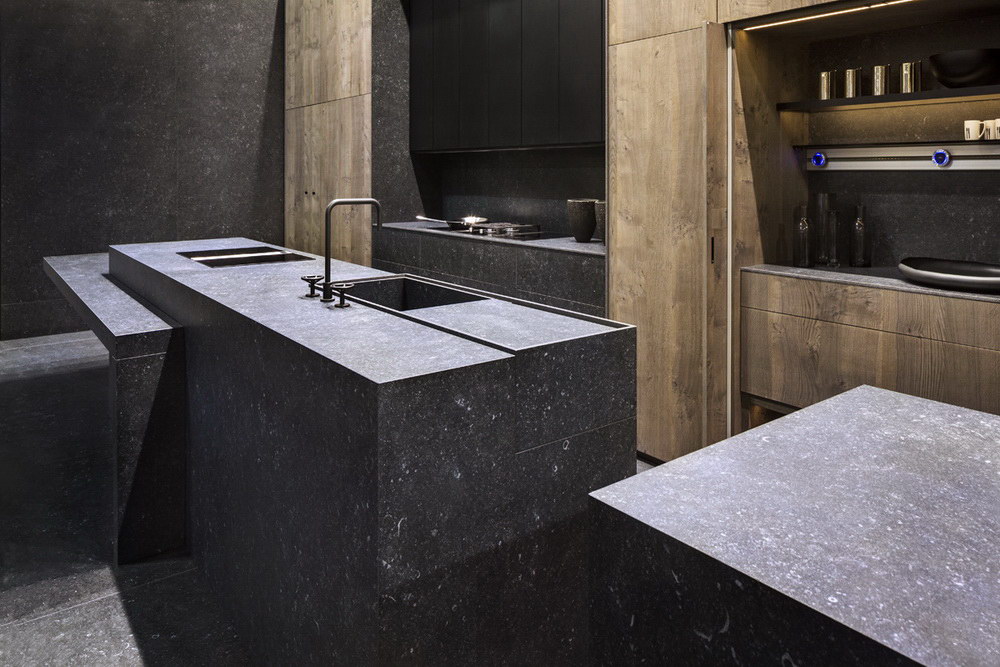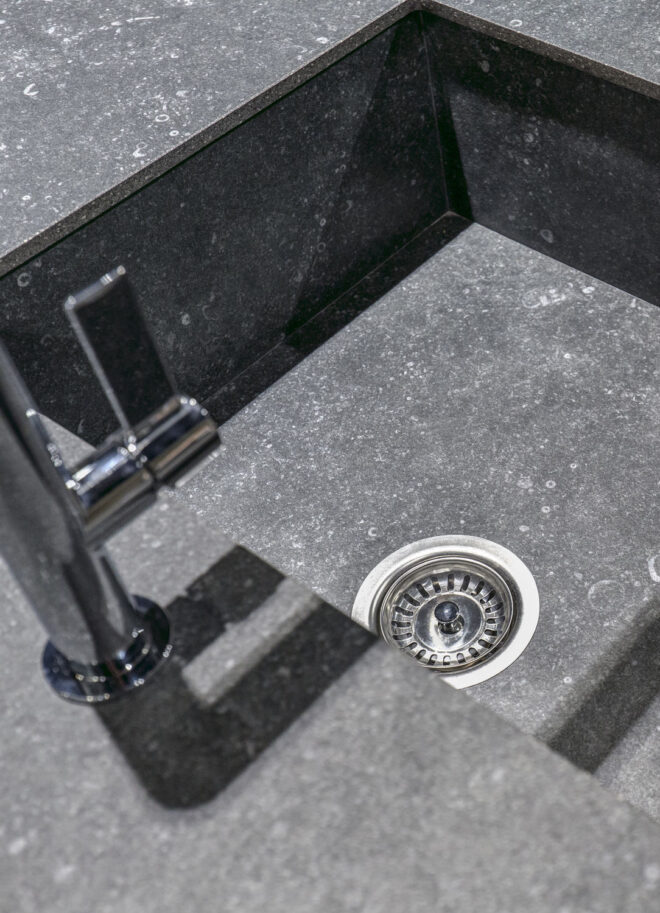 Le Neolith Pierre Bleue s’inspire de la célèbre pierre bleue belge, aussi appelée "Petit Granit", largement utilisée dans l’architecture européenne. Cette surface reproduit fidèlement l’aspect de cette pierre naturelle avec un fond gris bleuté profond ponctué de nombreux éléments minéraux caractéristiques. Ce dessin minéral subtil donne à la matière un rendu authentique et vivant, évoquant la robustesse et l’élégance intemporelle de la pierre d’origine.